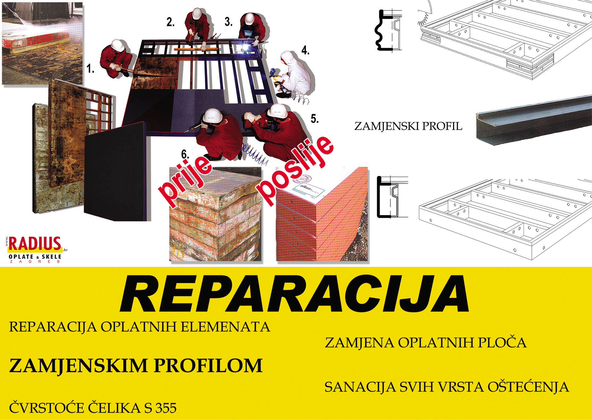 Poduzeće RADIUS d.o.o. se bavi prodajom, reparaturom i proizvodnjom građevinske opreme (oplate, skele i ostalo) uz pomoć robotike.